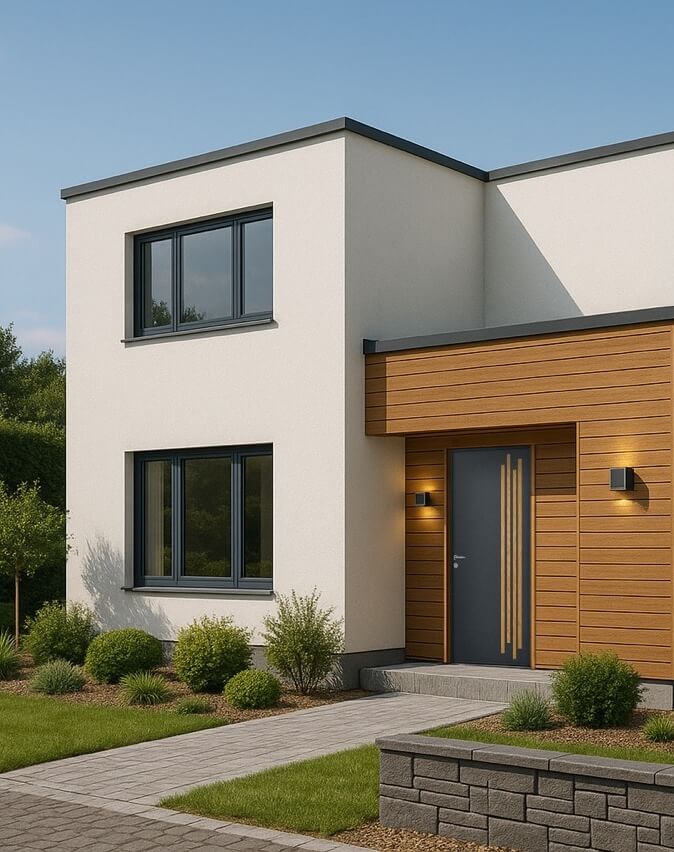 Extérieur : Tasseaux aluminium imitation bois (chêne moyen)