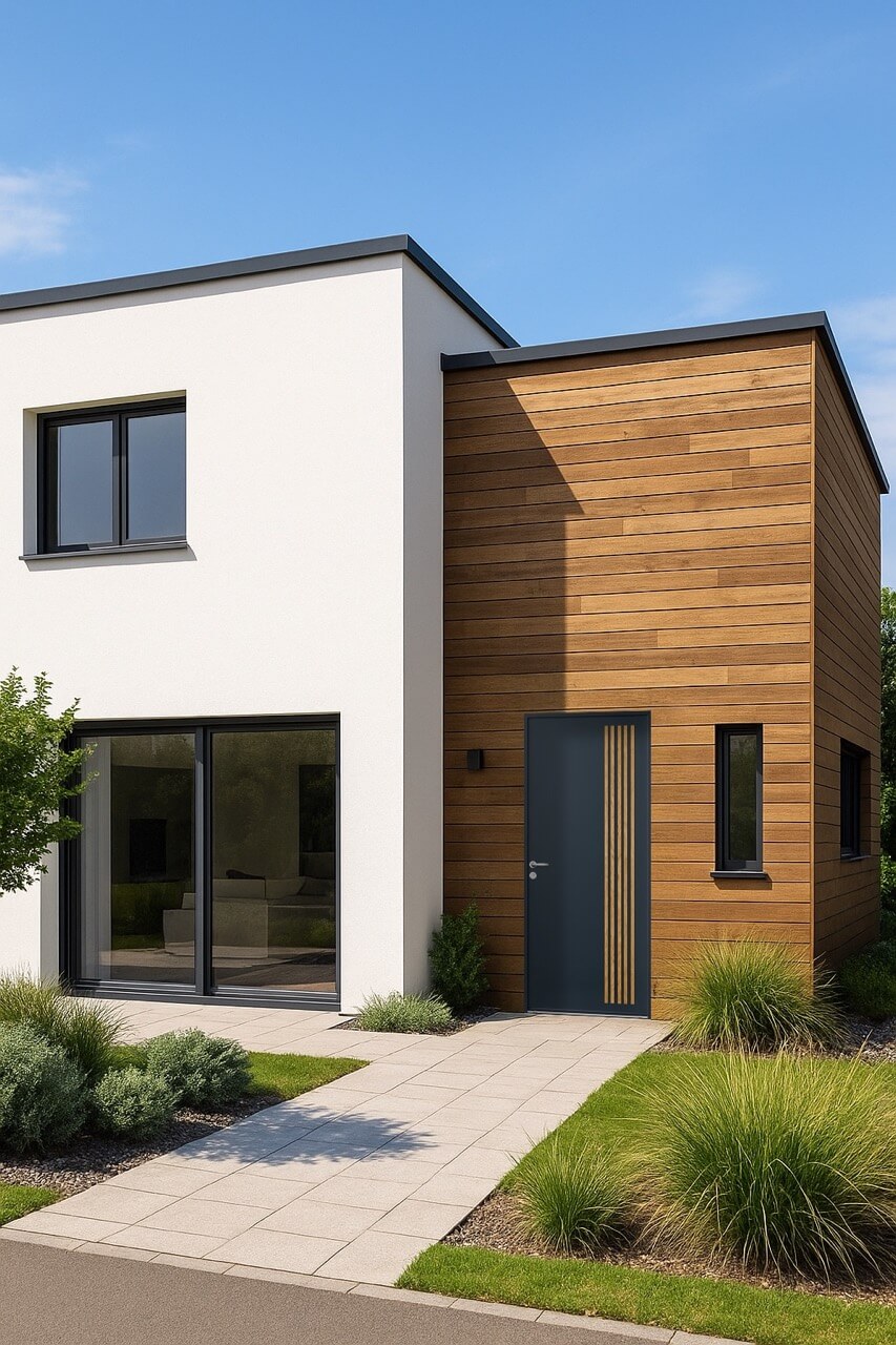 Extérieur : Tasseaux aluminium imitation bois (chêne moyen)