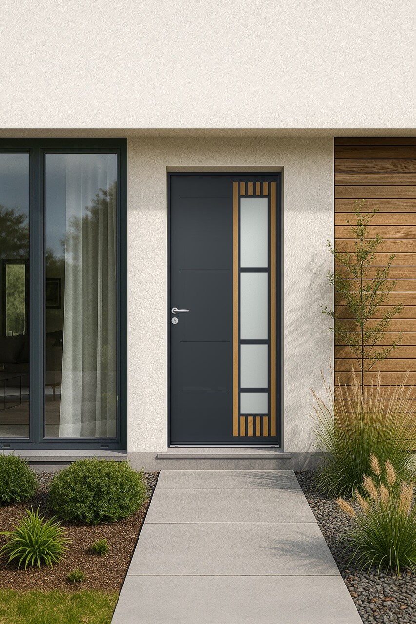 Dimension sur-mesure : 1 vantail + 2 fixes + 1 imposte vitrée