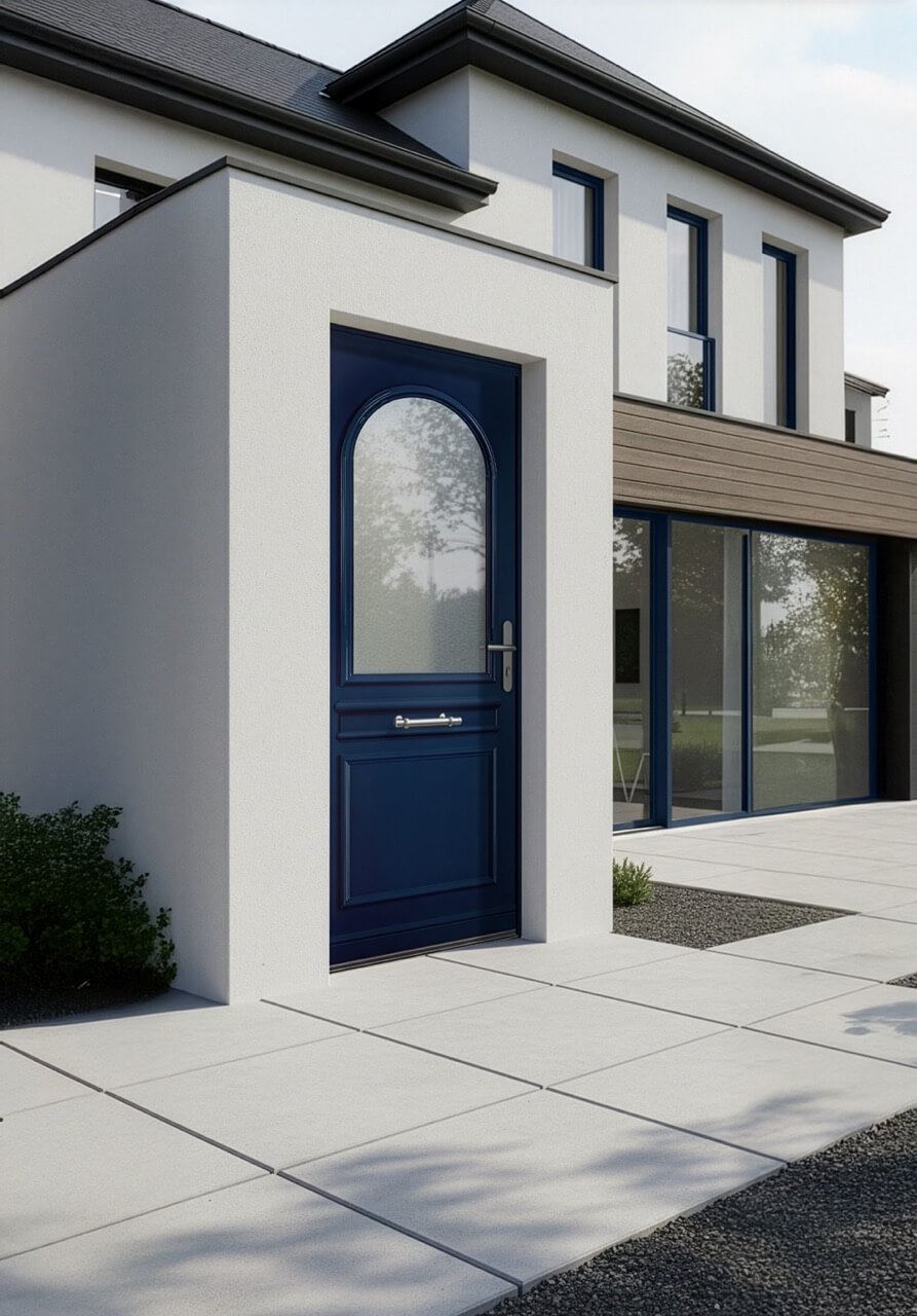 Dimension sur-mesure : 1 vantail + 2 fixes + 1 imposte vitrée